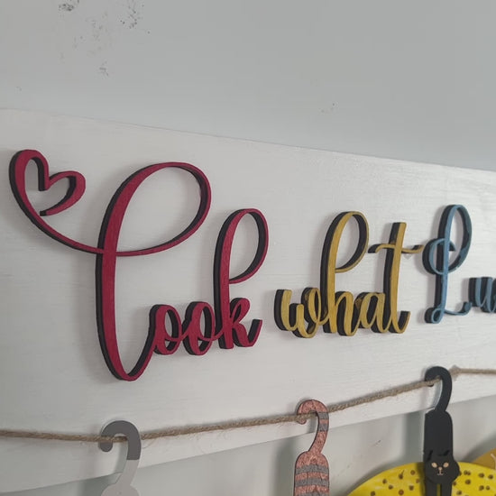 The Phrase on the board is made of laser-cut wood, and the 3D effect is obvious.