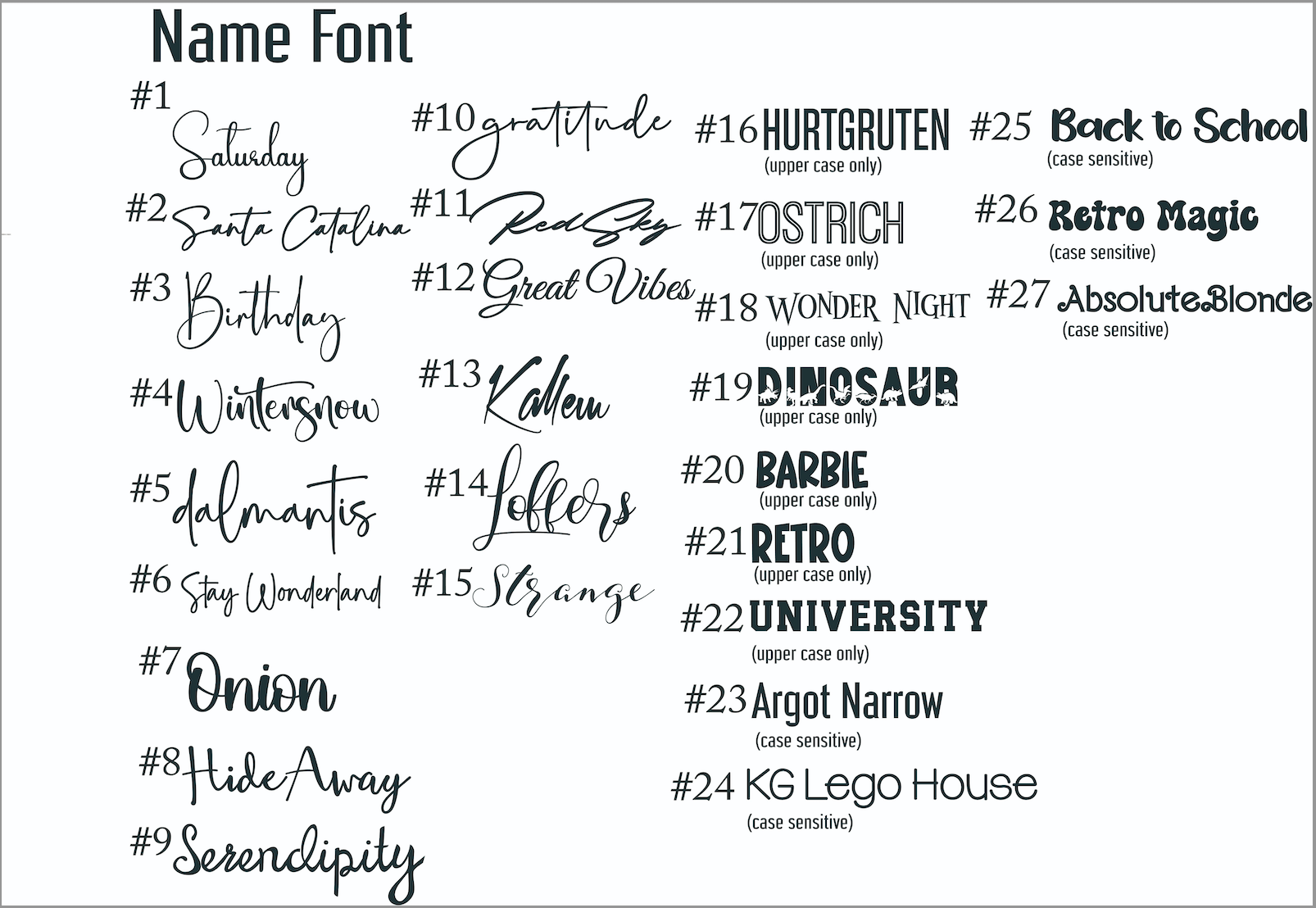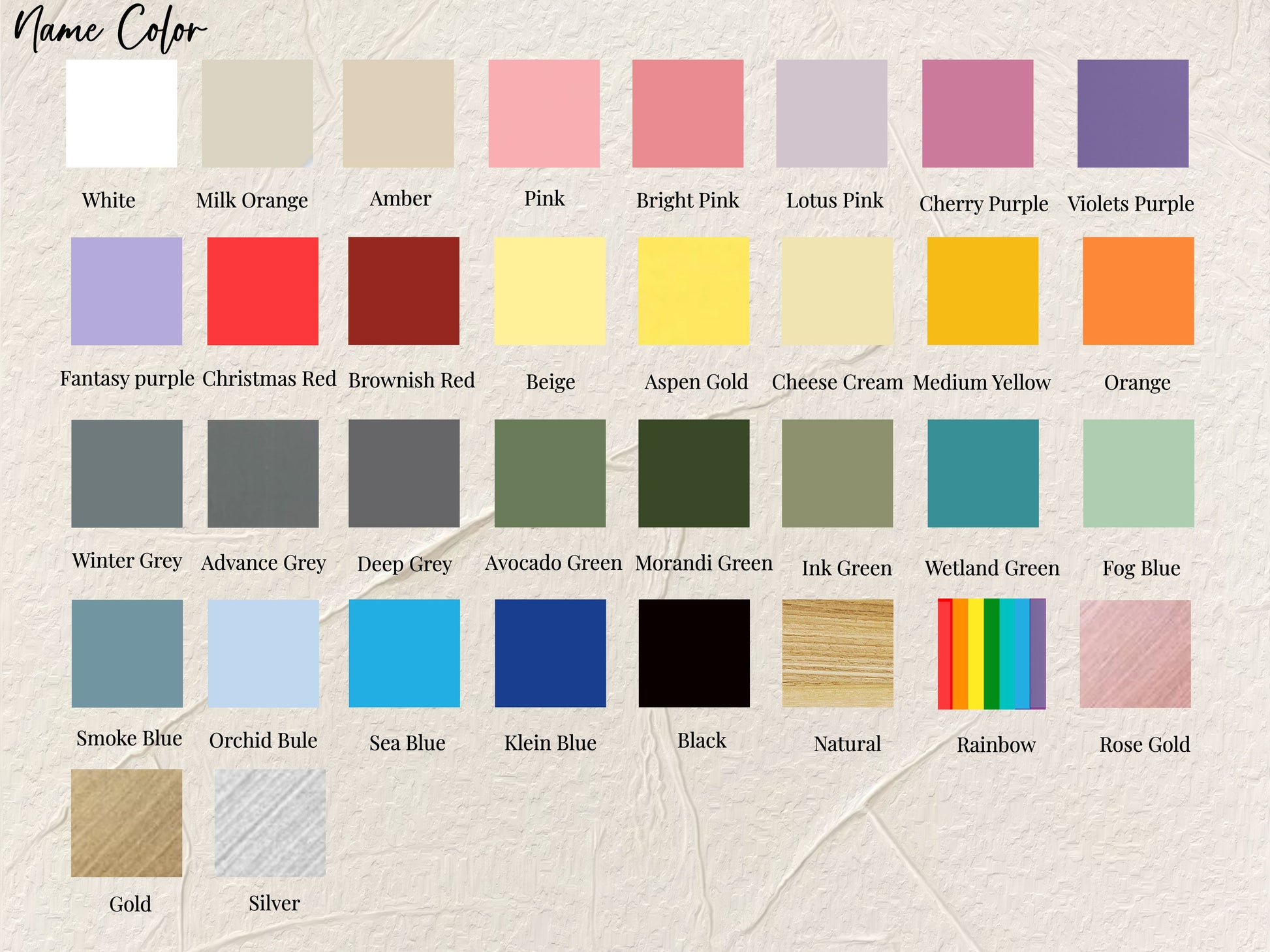 You can leave your First Name and Middle Name (up to two words are supported), or you can leave only First Name or Middle Name. The color of the name defaults to natural wood. Message me if you want to color the name!